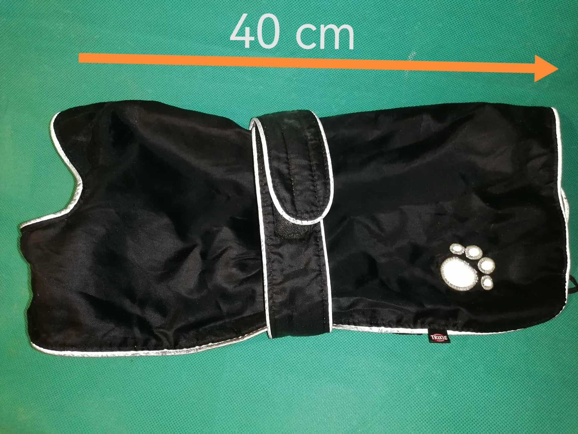 Obleček je ušitý z odolného nylonu, zateplený kvalitní flísovou podšívkou. Obleček je ozdoben vzorem psí tlapky a má všité reflexní pásky. Obleček je nastavitelný v oblasti hrudníku se zapínáním na suchý zip. Úchyty na zadní nohy zajišťují správné držení oblečku i při pohybu psa. Možno prát v pračce na 30°C.